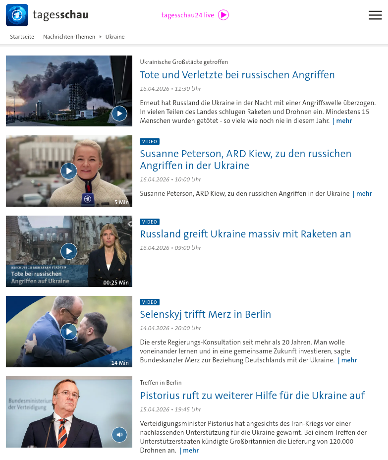 (b2) ARD-Tagesschau, Ukraine-Konflikt, Neuigkeiten; 16.04.2026; https://www.tagesschau.de/thema/ukraine